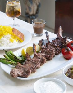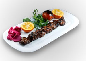 یک سیخ چنجه بره 220 گرمی / یک سیخ کوبیده 150 گرمی به همراه برنج محلی و دورچین
